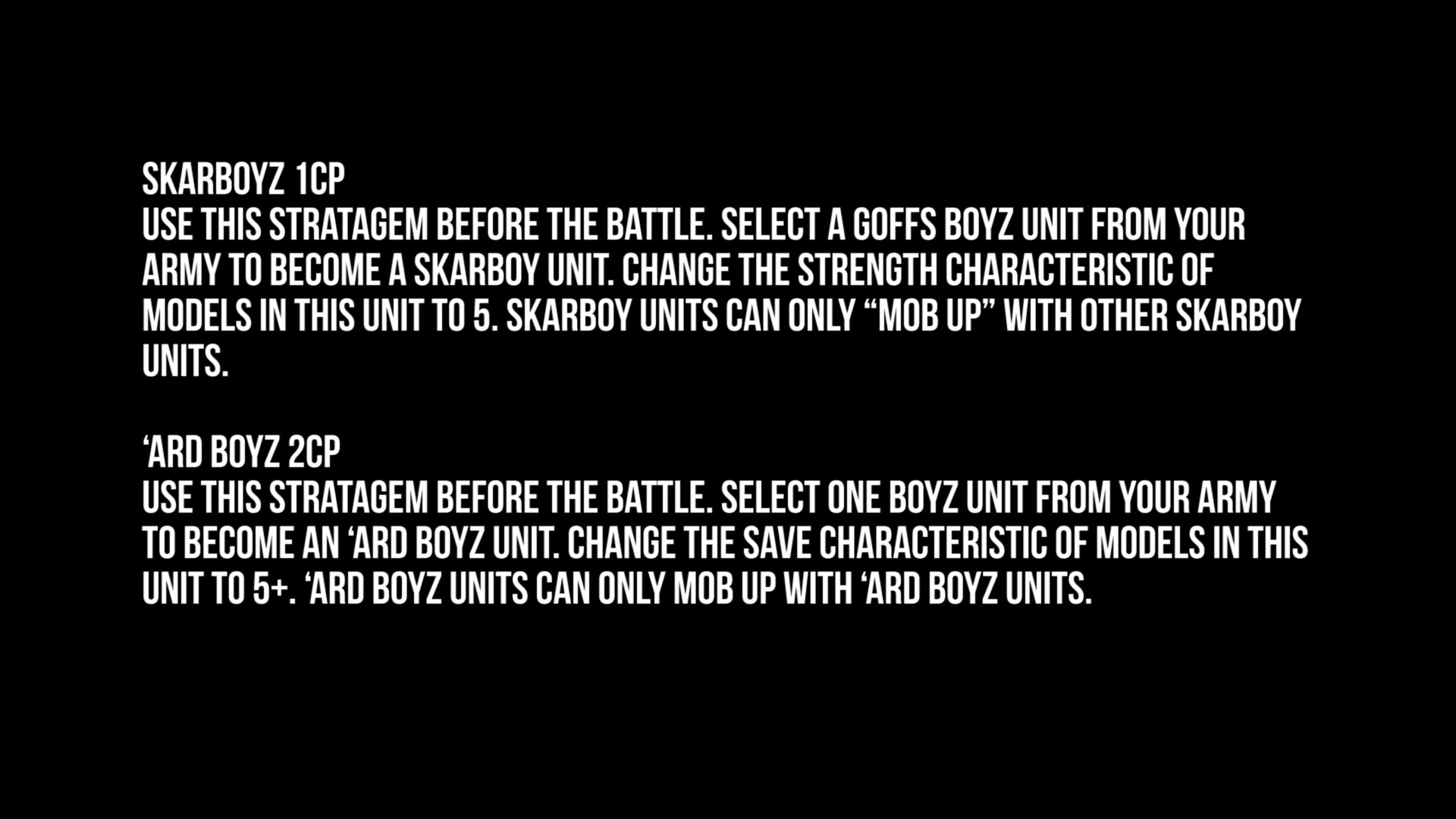 Para quienes echen de menos a Orkos más veteranos o con mejores armaduras, antes de la batalla se pueden dedicar Puntos de Mando a mejorar unidades para tener Fuerza 5 o salvación por armadura 5+.