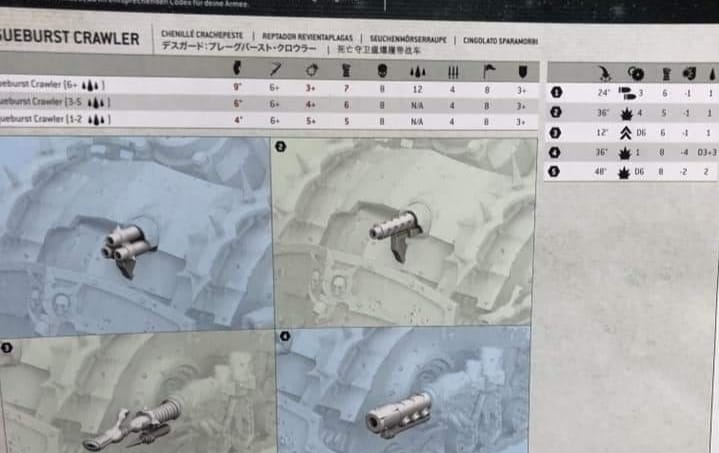Las filtraciones llevan ya varios días saliendo gracias a los reempaquetados de las miniaturas aprovechando el nuevo Codex de la Guardia de la Muerte. Hoy toca al Plagueburst Crawler.