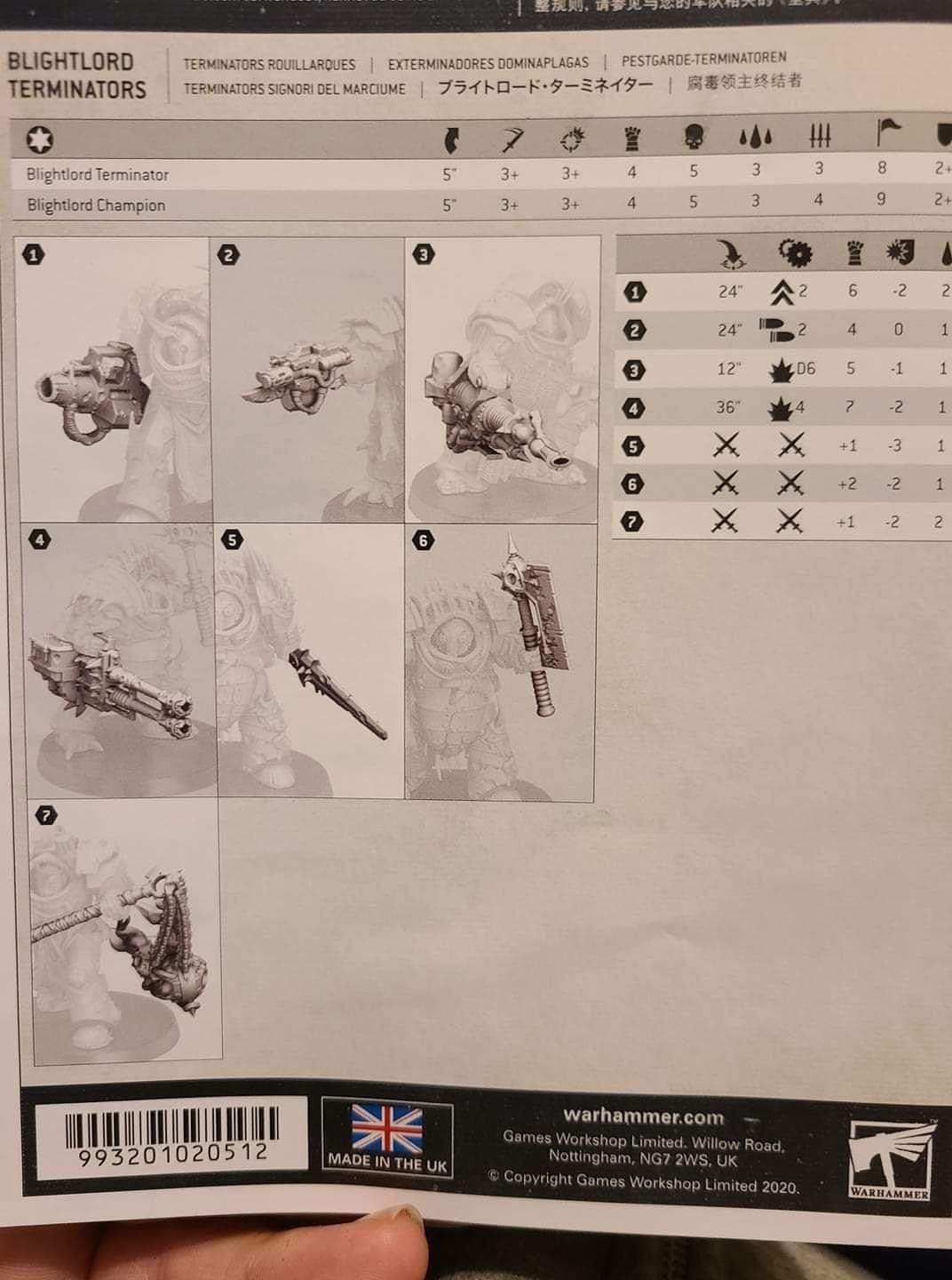 Las filtraciones llevan ya varios días saliendo gracias a los reempaquetados de las miniaturas aprovechando el nuevo Codex de la Guardia de la Muerte. A pesar del retraso en el lanzamiento del Codex, siguen circulando las imágenes en cámara-patata de las nuevas cajas, y hoy tocan los Exterminadores Dominaplagas, anteriormente conocidos como Blightlord Terminators.