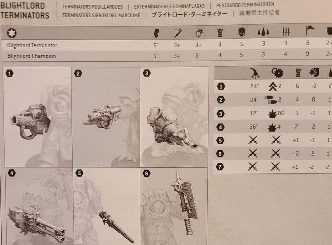 Las filtraciones llevan ya varios días saliendo gracias a los reempaquetados de las miniaturas aprovechando el nuevo Codex de la Guardia de la Muerte. A pesar del retraso en el lanzamiento del Codex, siguen circulando las imágenes en cámara-patata de las nuevas cajas, y hoy tocan los Exterminadores Dominaplagas, anteriormente conocidos como Blightlord Terminators.