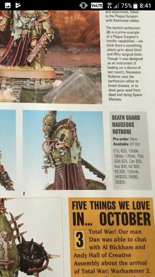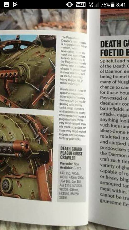Gracias a DeadFingers, siempre atento a lo que llega de B&C y otros foros, podemos conocer muchos detalles filtrados de la próxima White Dwarf sobre el lanzamiento de Marines de Plaga multicomponente, precios de todos los personajes y el tanque, etc.