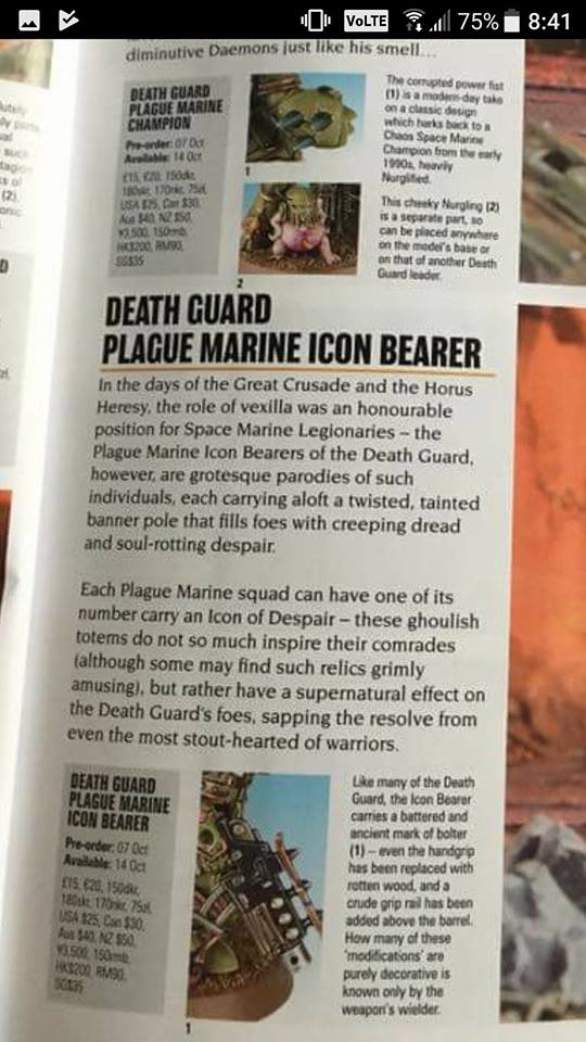 Portaestandarte y Campeón de Plaga alternativos (el del Icono grande y el del Nurglete con casco respectivamente) vendidos aparte para quien los quiera. Hay Icono y Campeón en el kit, pero esos dos son un «extra».