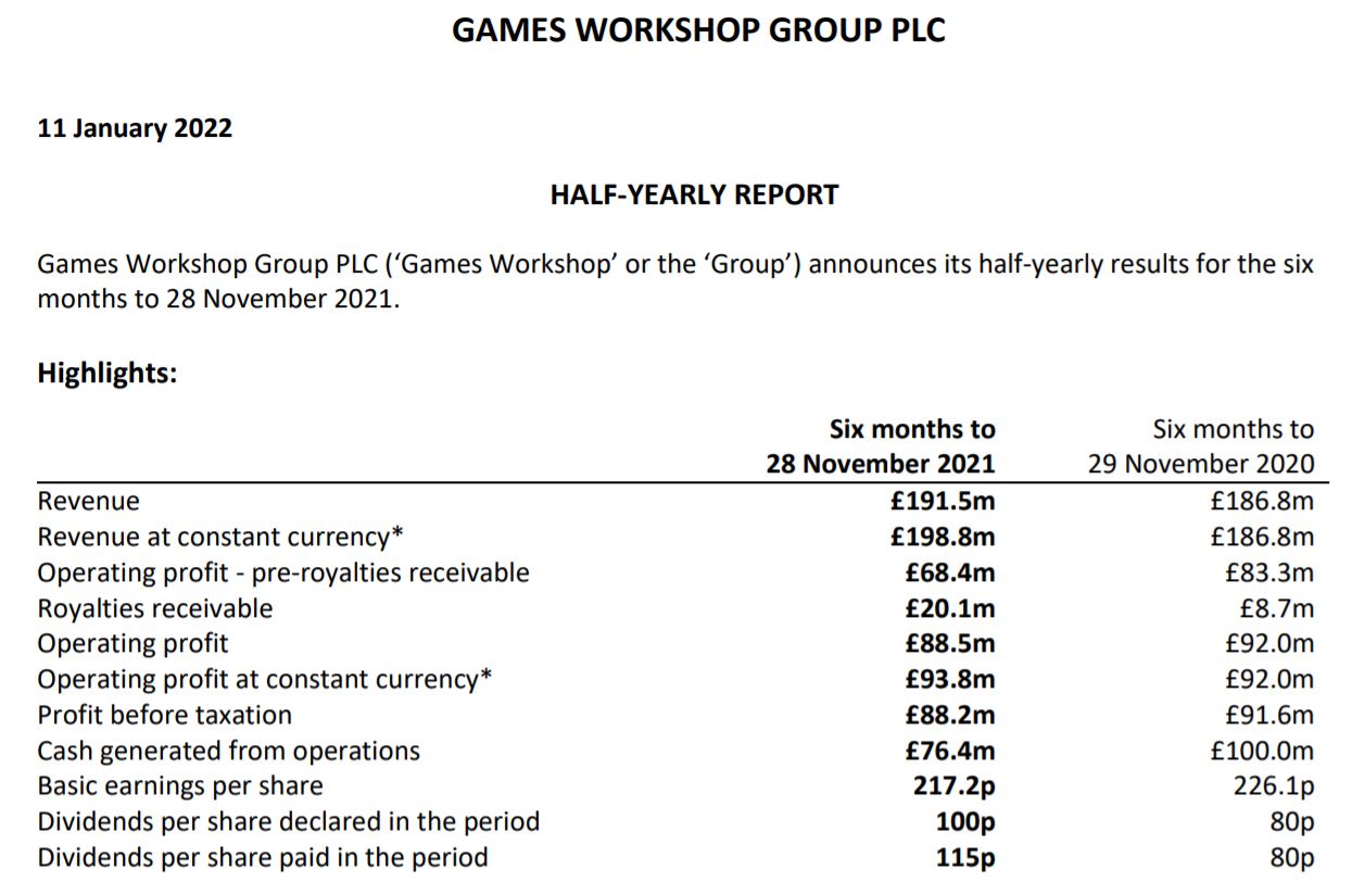 Desde hace años comentamos los excelentes resultados de Games Workshop en sus informes anuales o semestrales, fiel reflejo de la presente edad dorada de la compañía gracias a Warhammer 40k, Age of Sigmar y la excelente gestión de su propiedad intelectual y licenciamiento a terceros, entre otros factores.