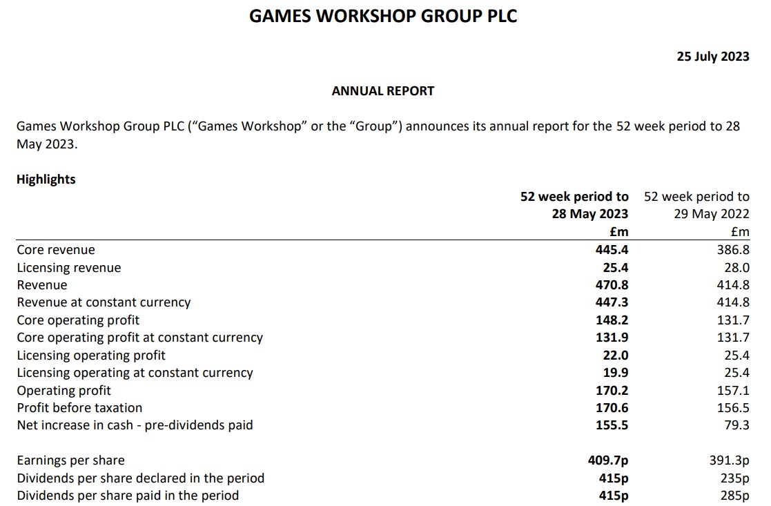- El pago de dividendos a los accionistas ha vuelto a subir, como muestra de la generación continua de cash de Games Workshop.