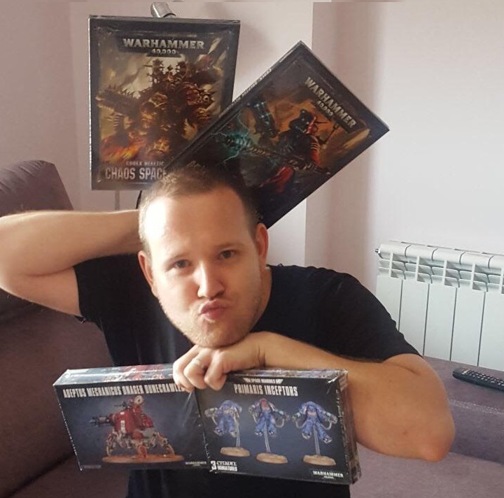 Roberto nos ha enviado su foto con el premio de este mes, que ganó en el sorteo celebrado el pasado día 12 y que consiste en una caja de Inceptors multicomponente, una caja del Onager Dunecrawler, un Codex: Adeptus Mechanicus y un Codex: Marines Espaciales del Caos.