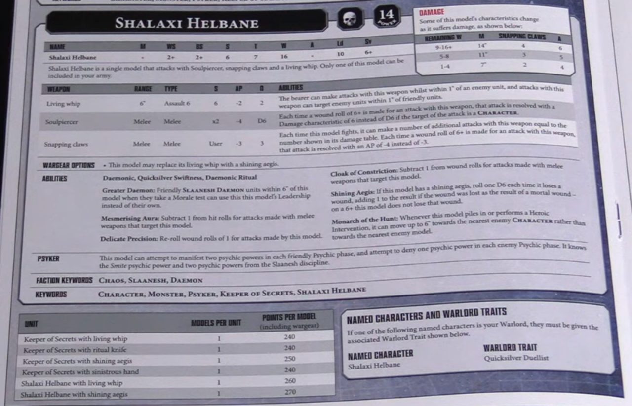 Las primeras dos hojas de datos de los nuevos Demonios de Slaanesh ya se pueden ver, incluyendo su coste en puntos, dado que vienen en su caja junto al manual de montaje.