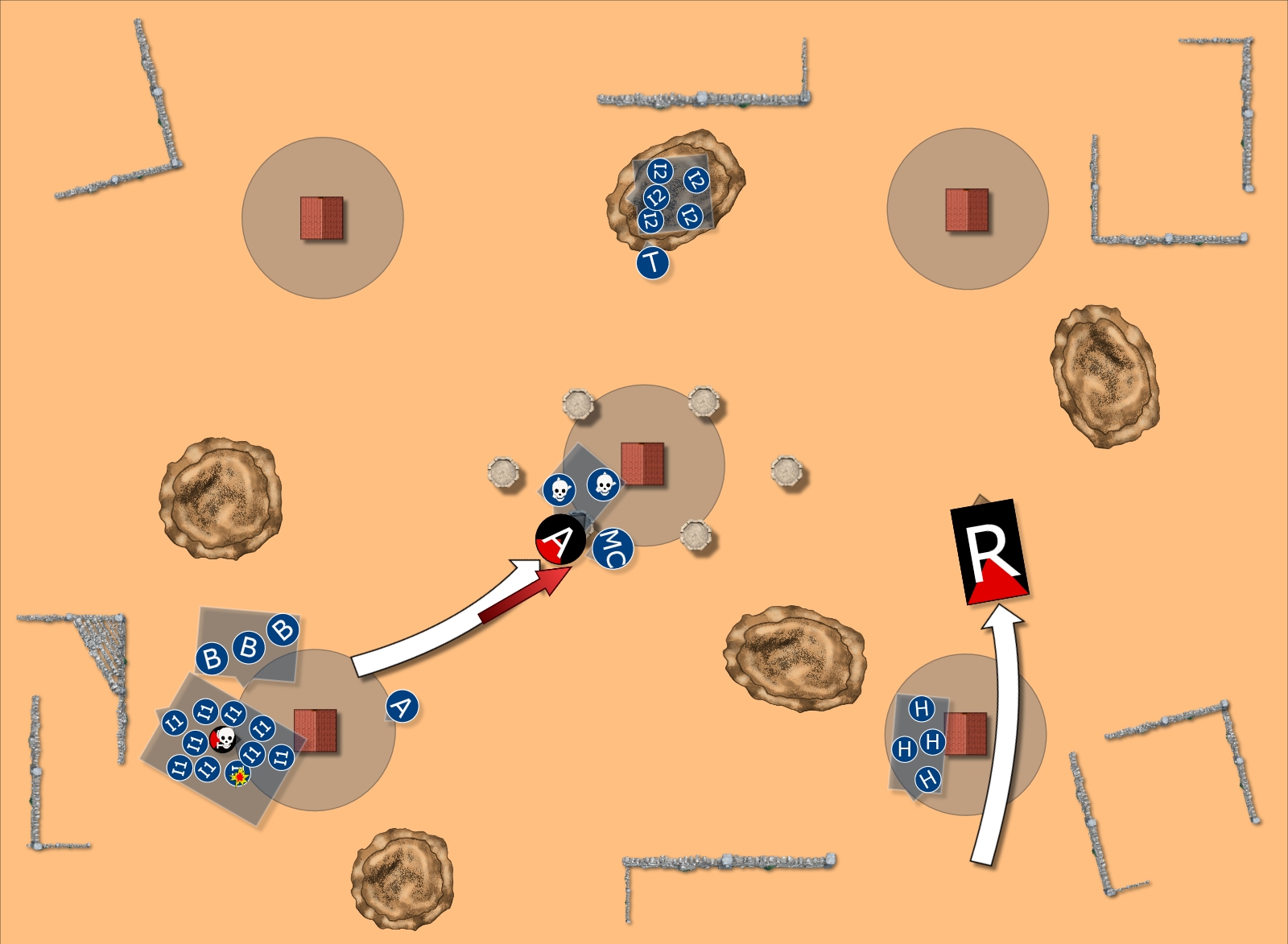 +4 de Juramentos por estar a 6″ del centro, matar un Personaje y no haberse Retirado ni Huido