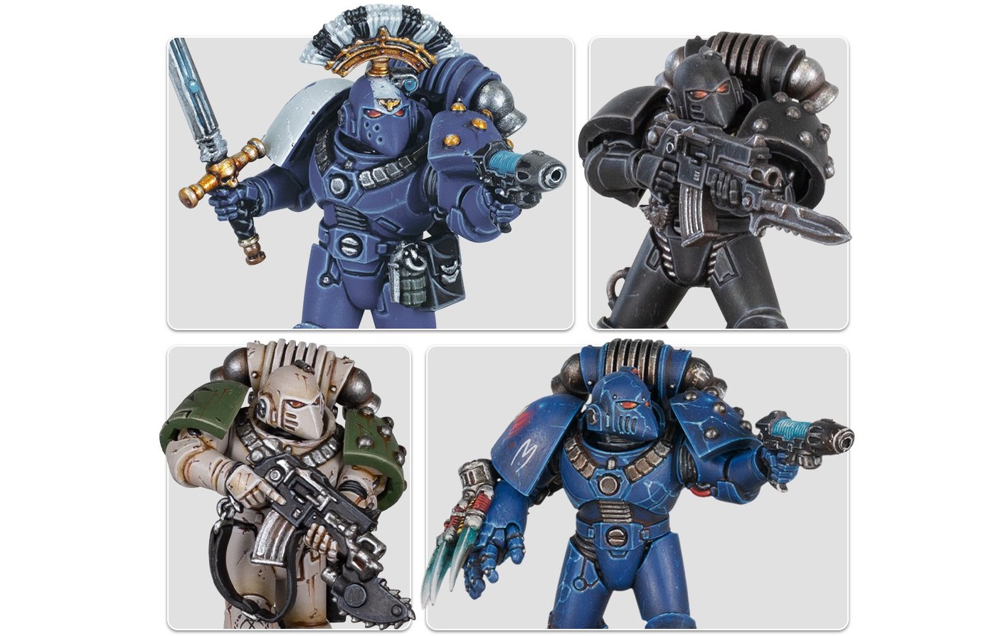 Los aficionados veteranos notarán guiños a la legendaria caja RTB01 de marines de plástico de 1987 y que tenían también servoarmaduras Mark VI multipose. Los nuevos legionarios son más grandes y sus piernas no están achaparradas, pero la versatilidad es la misma, incluyendo las bayonetas. Las hombreras y cabezas también tienen multitud de opciones.