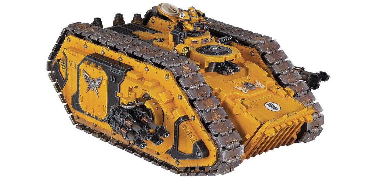 Lleva ocho cañones láser agrupados junto a armas intercambiables como bólteres pesados o más cañones láser, o incluso lanzallamas pesados. Y en el afuste exterior armas variadas como combi-volkites o lanzamisiles aniquilador.