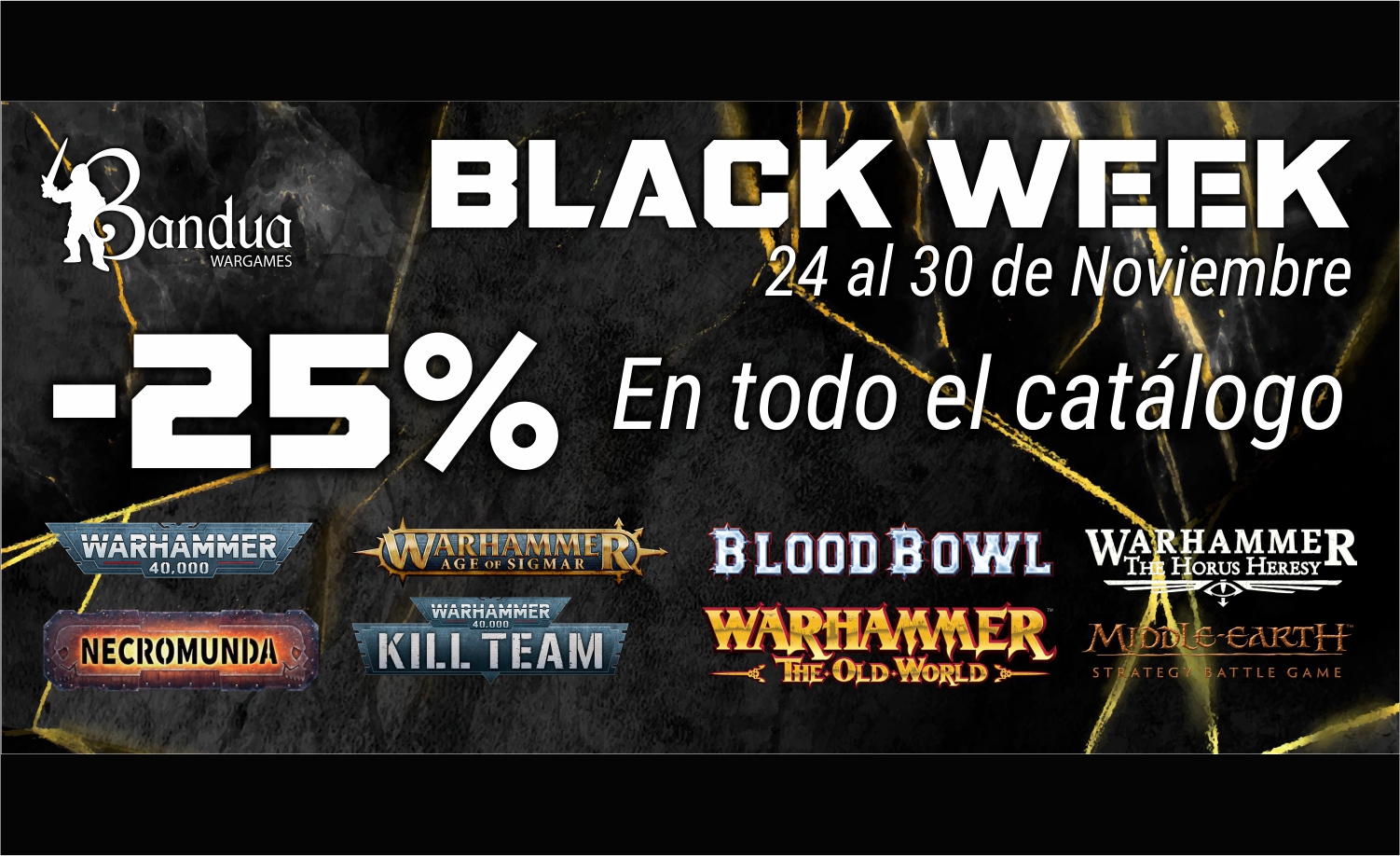Durante la Black Week, del 24 al 30 de noviembre, ¡todo el catálogo de Games Workshop está al 25% de descuento!