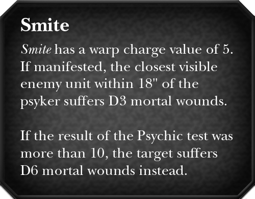 Cada vez que selecciones un psíquico, puede lanzar tantos poderes como se indique en su hoja de datos (que son tantos como Nivel de Maestría) y hay un modo simple de lanzarlos, tirando 2d6 y sacando más que el valor de carga de disformidad del poder. Cuanto más poderoso sea el poder psíquico, más alto es su valor.