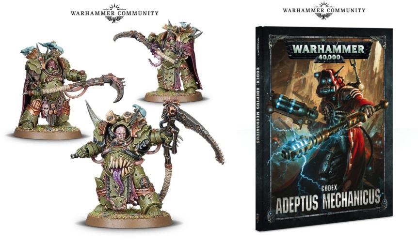 El Codex: Adeptus Mechanicus incluirá al Culto Mechanicus, a los Skitarii y como gran novedad, a los Caballeros del Questor Mechanicus. Tendrá reglas para 7 Mundos Forja, desde Marte hasta Agripinaa y Stygies VIII.