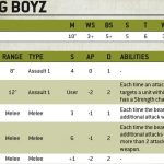 Un veterano de Krieg tiene Defensa 3, salva al 5+ y tiene 7 Heridas. Ahora los atributos de Heridas son mucho mayores, igual que los daños.