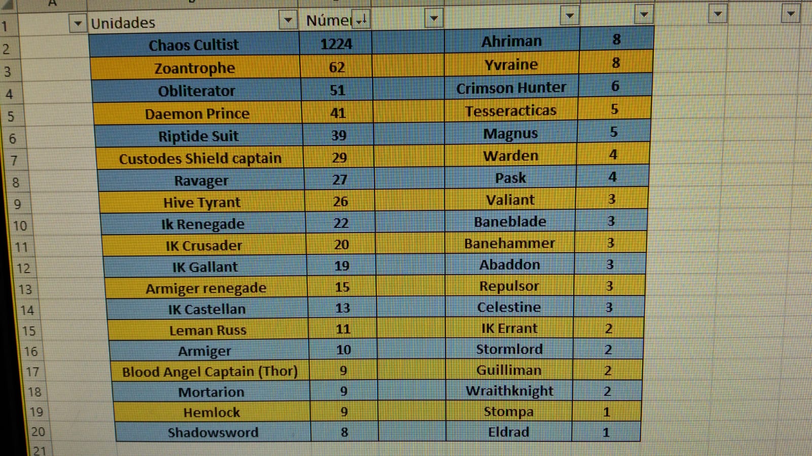Lo de que sean fotos en vez de pantallazos es algo que a pesar de la presión metida por Bizarre o nosotros no ha podido cambiarse. ¡Nunca te perdonaremos, Fher! Evidentemente, ese último puesto de los Orkos es algo que podría cambiar en futuros torneos tras la salida del Codex.