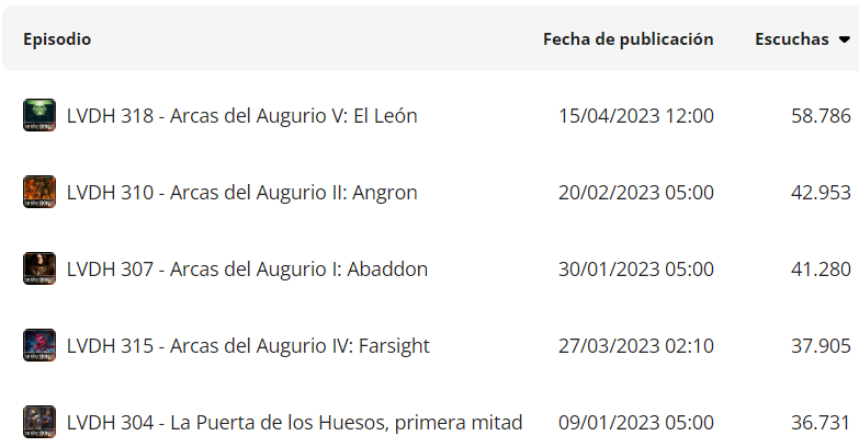 1 – Arcas del Augurio V: El León (58.786 oyentes en 2023)