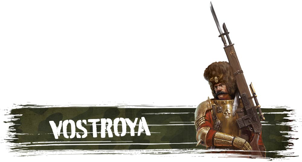 De hecho, cada vostroyano acude a la guerra armado con sus valiosas herencias familiares, construidas y mantenidas con una calidad mucho mayor que la del resto de la Guardia Imperial. Sobre la mesa, eso se representa con su doctrina de Armas Reliquia: