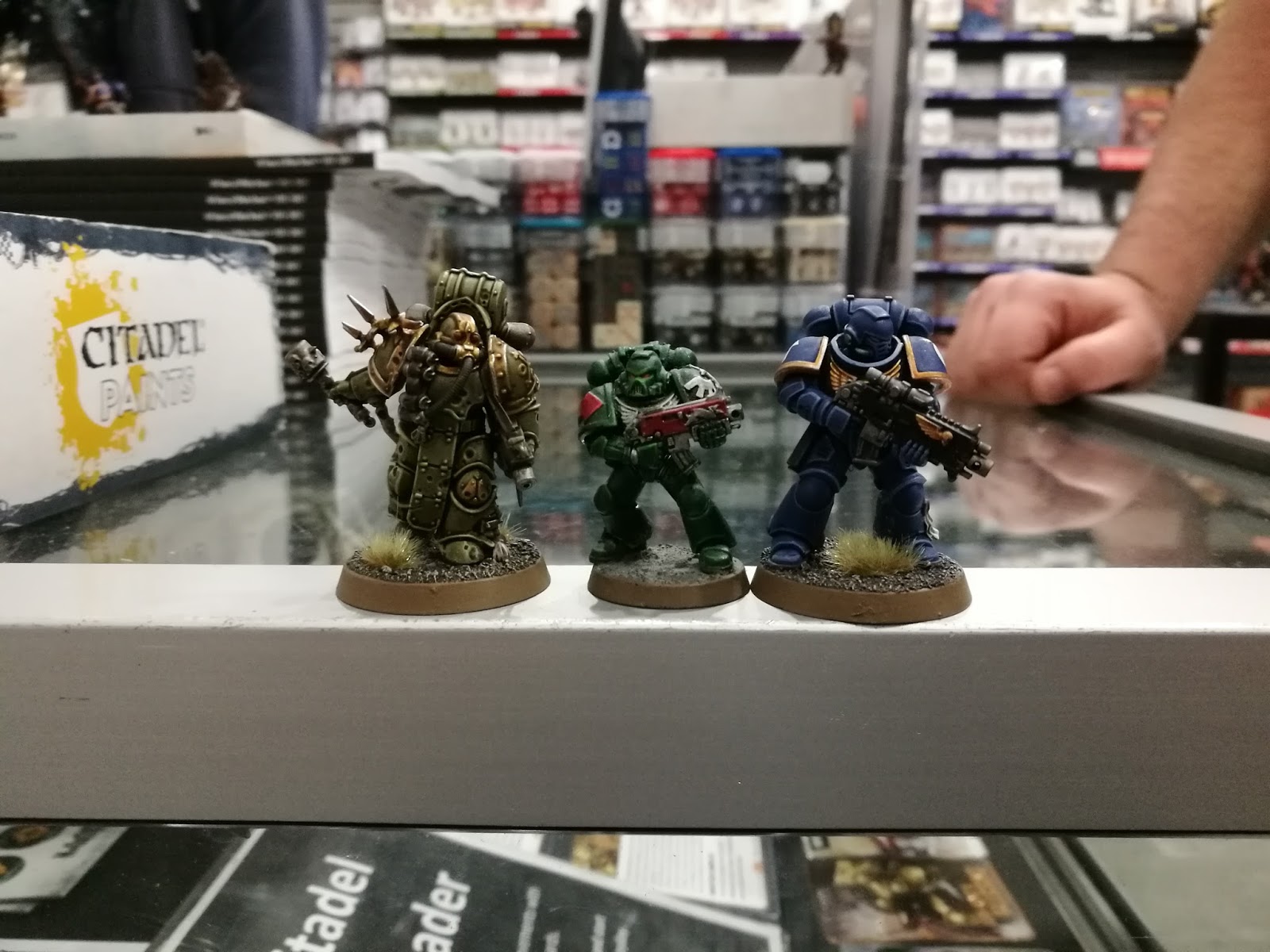 Por un lado, tenemos un par de fotos enviadas por un lector a Faeit212, comparando a las nuevas miniaturas con un stormcast eternal de AoS y con un marine táctico de los Ángeles Oscuros: