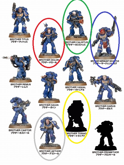 Además de confirmarse lo que ya pudimos ver hacer unas horas sobre El Laberinto de los Necrones, también podemos comprobar la correspondencia entre los cinco Marines Espaciales del Labyrinth of the Necrons y de los Héroes Marines Espaciales japoneses: