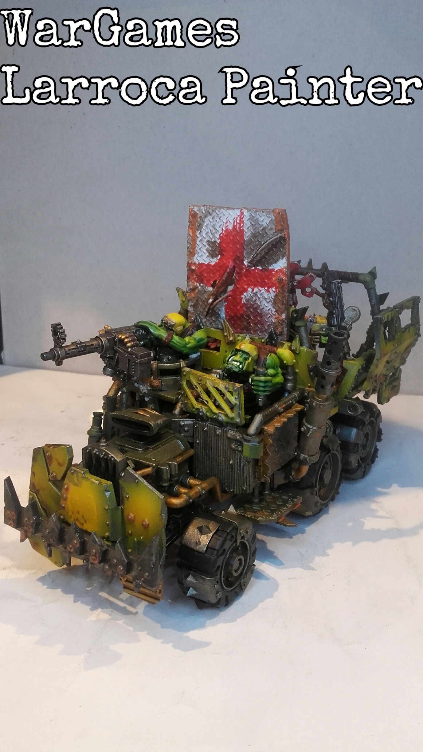 Para hacerla he partido de un kamión orko al que le he fabricado un pequeño quirófano en la parte trasera, me hubiese gustado poner un par de bidones con sangre o con miembros mutilados pero no quedaba espacio.