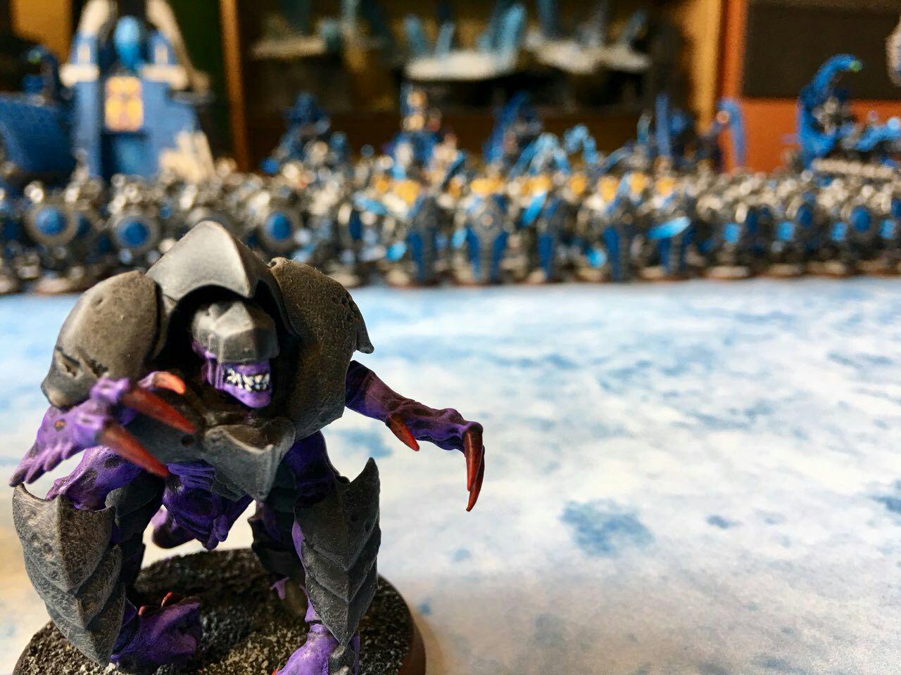 Cuando Saguardia nos envió esta primera foto de un Tiránido corriendo para salvar su culo con la horda de Necrones al fondo, supimos que esto tenía que compartirse.
