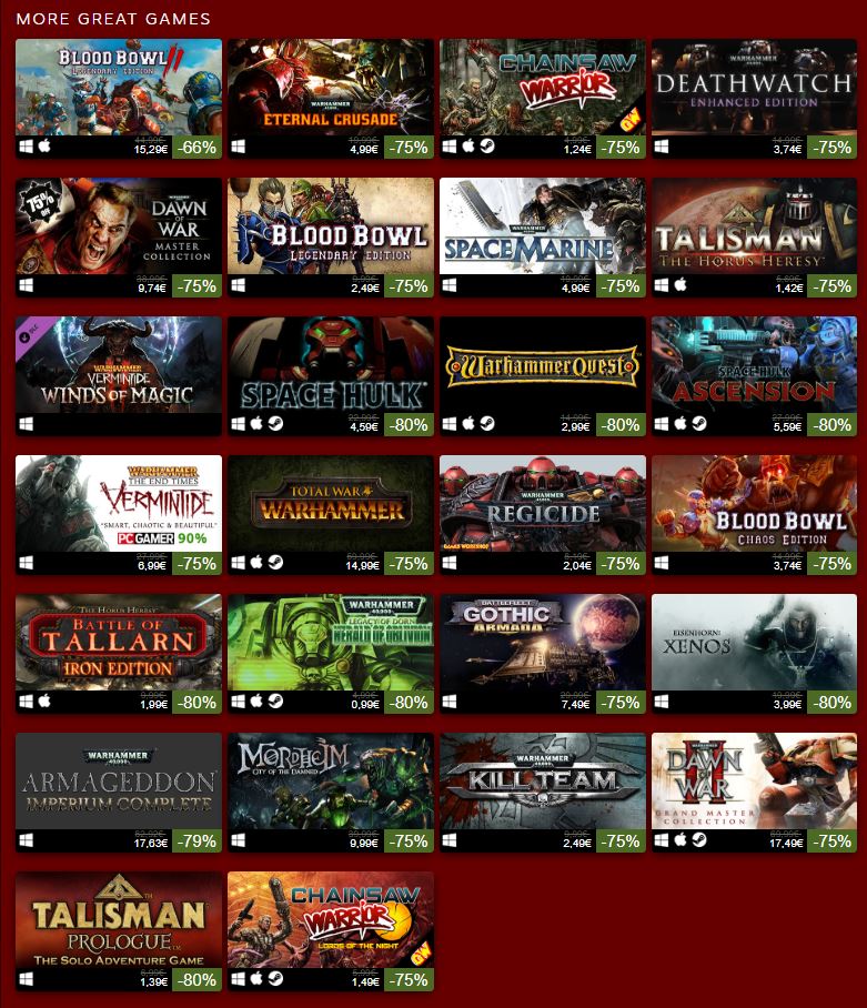 Todas estas ofertas están disponibles en Steam hasta el lunes día 20. ¡Comprad con moderación! Que si no luego no hay dinero para miniaturas…