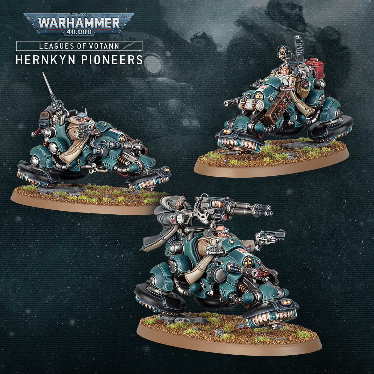 El responsable principal de diseño de las miniaturas es Jes Goodwin, que explica que visualmente los Pioneros Hernkyn son como los propios Votann: gruesos, ásperos y duros. Incluso su tecnología anti-gravitatoria es poco sutil, en contraste con la elegancia de la de los Aeldari, por ejemplo. Se los imagina salpicando tierra mientras maniobran.