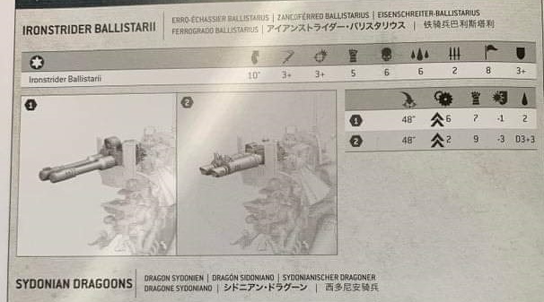 En esta ocasión son los Ironstrider Ballistarii, cuya traducción oficial al español será a partir de ahora Zancoférreos Ballistarius, y los Sydonian Dragoons que serán en español los Dragones Sidonianos:
