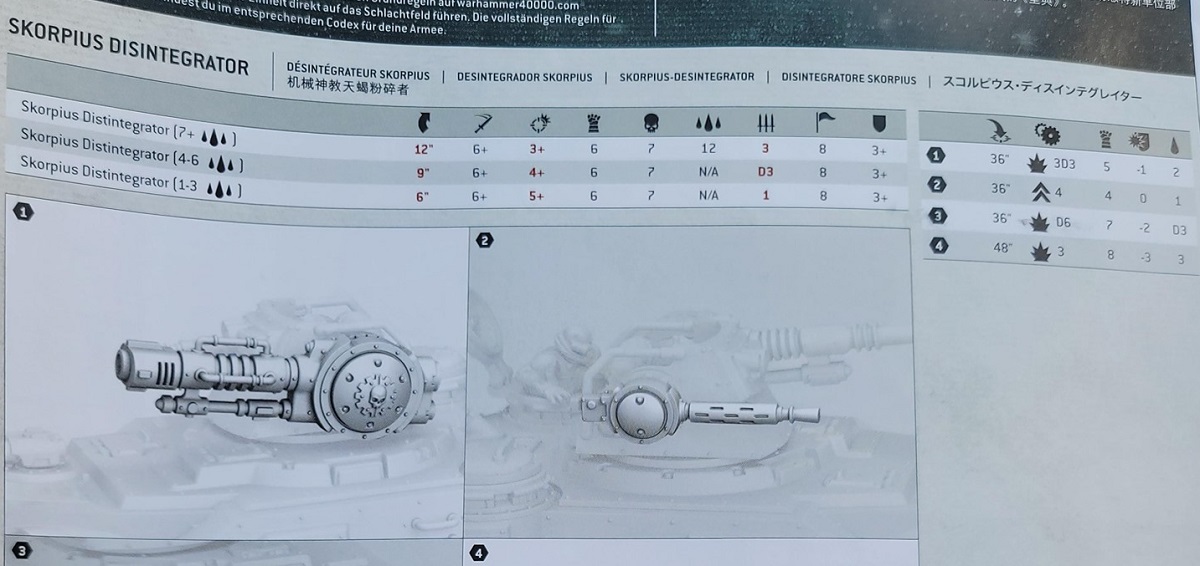 Los únicos cambios están en el armamento, con el popular cañón Belleros bajando de F6 a F5 y las ametralladoras Cognis mejorando tal y como hemos visto ya en otras hojas de datos del Mechanicus.