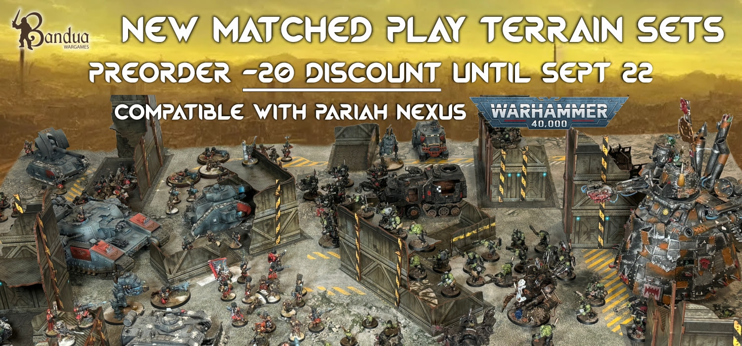 Estos nuevos packs fabricados por Bandua Wargames son económicos, prácticos, fáciles y rápidos de colocar, montar y, lo más importante, fáciles de guardar. Esto permite a los organizadores de torneos, clubs y tiendas tener mesas baratas, equilibradas, estandarizadas y muy sencillas de almacenar. ¡Y están basados en el terreno utilizado en los Mundiales de Atlanta y el US Open de Games Workshop!