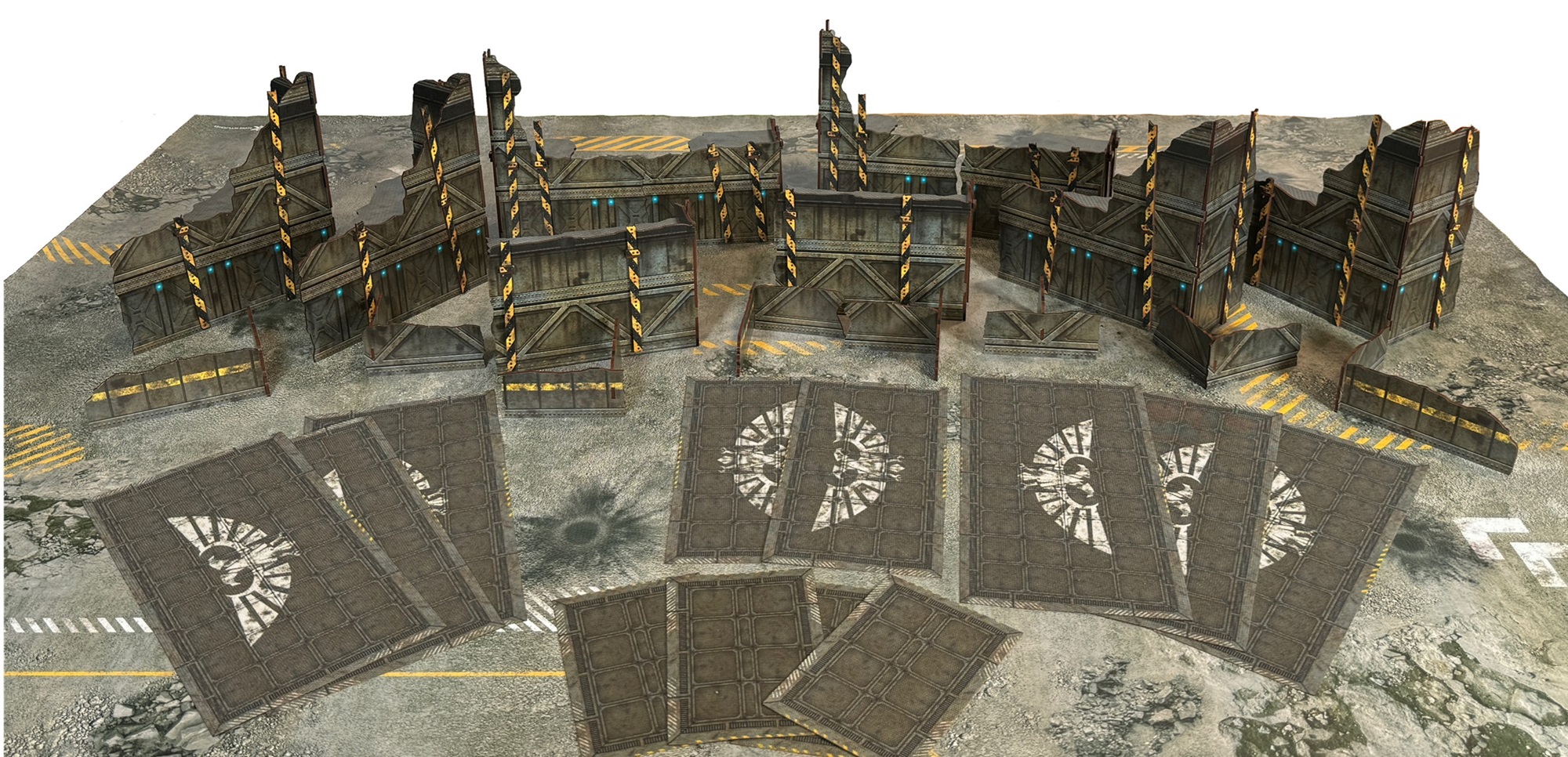 Tenemos 4 packs diferentes, variando únicamente la estética entre ellos, permitiendo tener variedad visual entre mesas. Todos ellos incluyen tanto las ruinas grandes, las pequeñas y todas las áreas de 12×6, 10×5 y 6×4 de los layouts oficiales de GW.
