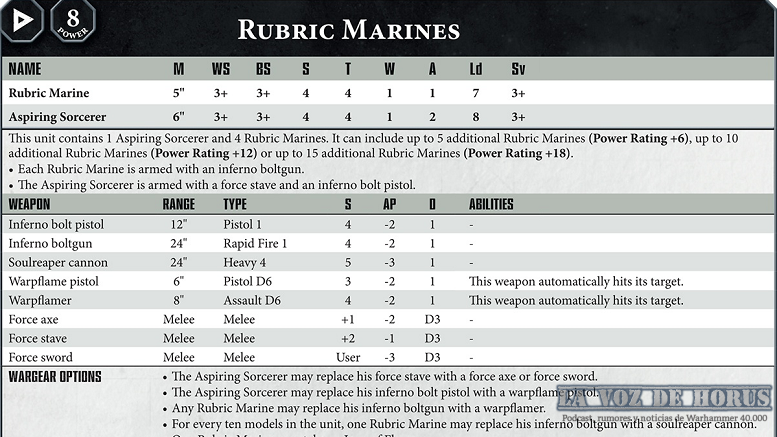 Gracias a lo avispado que ha estado Will of Steel con su feedly de Warhammer Community, tenemos ya disponible un avance de lo que colgarán más tarde: ¡el perfil completo de Marines Rúbricas de los Mil Hijos!