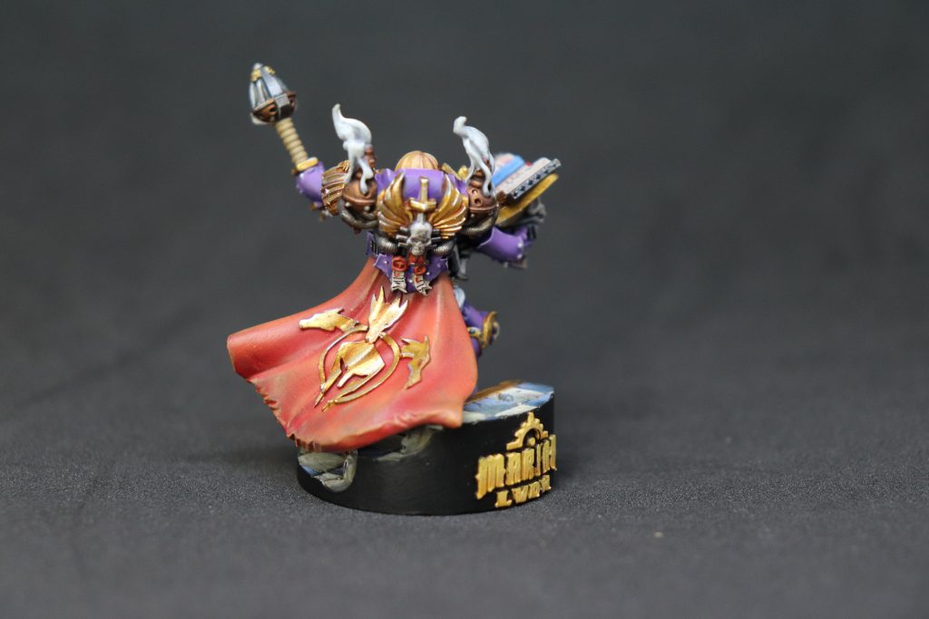 La Hermana Marina porta una maza-incensario de energía y un bólter-libro que reparte a la vez justicia y conocimiento.
