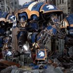 40 marines espaciales Mark VI, un Spartan de plástico, un nuevo Contemptor de plástico, los 2 Pretores que ya hemos ido conociendo en las últimas semanas y 10 Exterminadores Cataphractii. Un contenido adaptable a dos Legiones cualquiera, aunque el pintado promocional de la caja es de Hijos de Horus y Puños Imperiales.