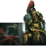 La siguiente escena ya es un salto temporal hasta uno de los grandes salones del crucero. Allí, Kazarion y Hadral están frente a las armas y otros restos de sus hermanos caídos, entre ellos Ancaeus y Rafael. Poco después podemos ver a Hadrael trabajando junto a la magos para culminar el proceso de salvar a Orpheo dentro del sarcófago de un Dreadnought.