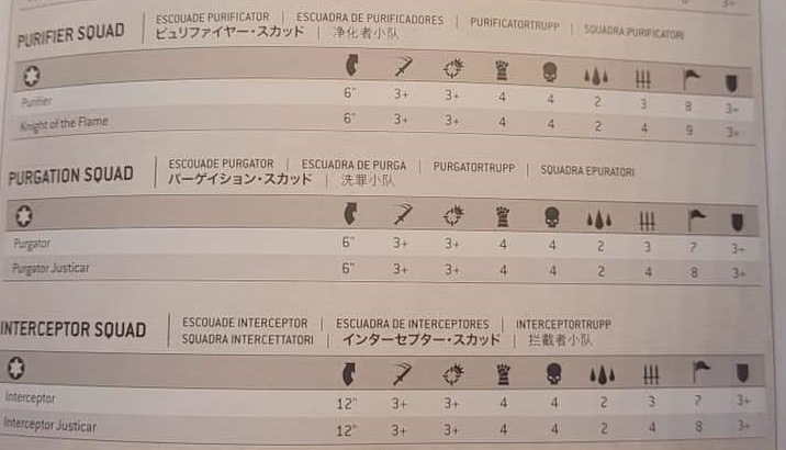 La novedad principal en las unidades, junto a la esperada segunda Herida, es que parece que el atributo Ataques incluye ya un ataque más tal como ocurre en la Guardia de la Muerte, a diferencia de los Marines Espaciales que sólo tienen ese ataque al cargar, ser cargados o intervenir: