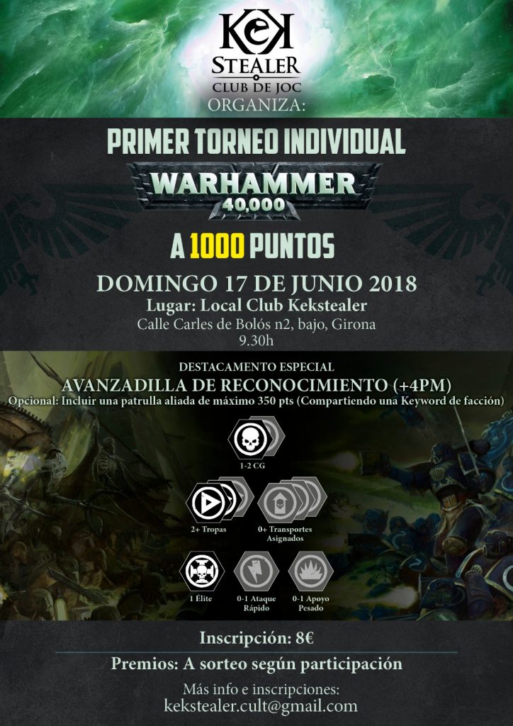 Pero es que ese mismo día, en Girona, el Club de Joc Kekstealer va a darle caña a un torneo individual de 40k con partidas más pequeñas pero con una escenografía completamente pintada que da gusto verla.
