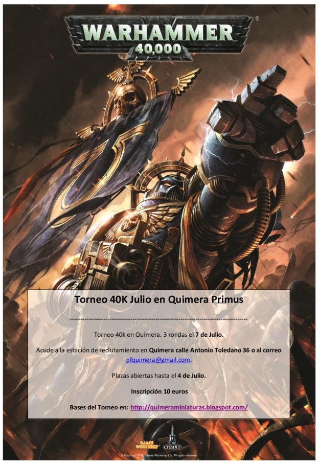Seguimos avanzando julio con torneo madrileño con el Torneo Quimera Primus, en este caso a 1500 puntos y sólo 2 destacamentos, limitando las partidas a tamaños todavía más manejables.