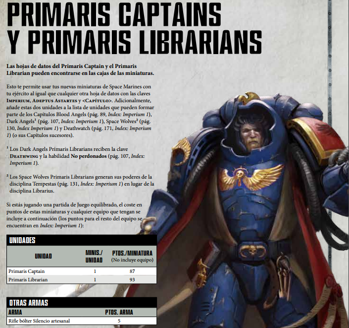 Curiosamente van a ser los primeros Marines Primaris disponibles para la Deathwatch, como puede verse en su hoja de puntos (¡gracias por el aviso, Allgamer Man!):
