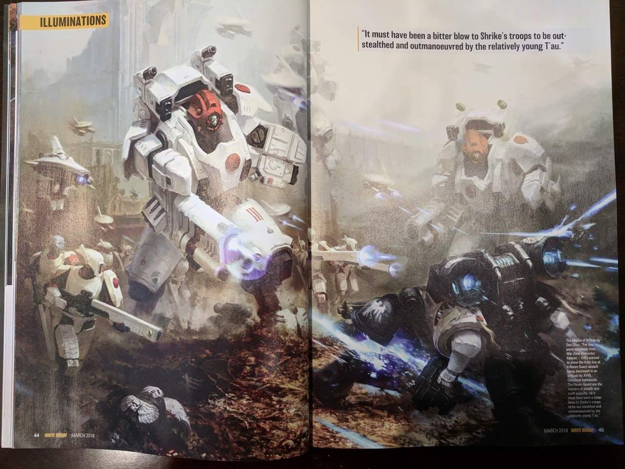 La WD de este mes tiene dos puntos de gran interés para los aficionados a 40k: las reglas completas para utilizar a los Cultos Genestealer en Necromunda, y adelantos varios el Codex: Imperio T’au.