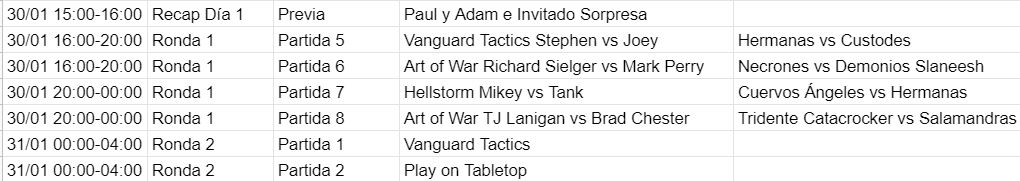 39 horas de retransmisión de Warhammer 40k entre viernes, sábado y domingo. Un final de enero de Warhammer sin tapujos, directo a saciar las ganas de partidas reales y partidas competidas. ¡Y será retransmitido en directo en español! La Voz de Horus y DEEP Games son parte del equipo de colaboradores oficiales del evento. Podréis escuchar a Xandre y Byor junto a Bizarre y Antonio, además de muchos invitados que irán ayudándonos a amenizar todo el fin de semana.