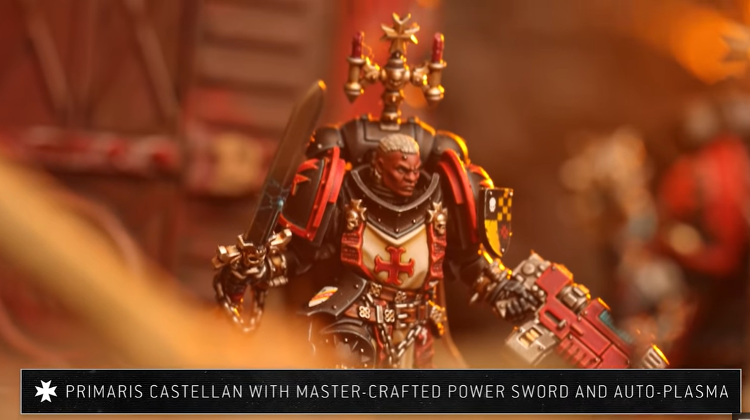 ¿Hay algo más llamativo todavía que un Castellano Primaris (el equivalente a Teniente de los Templarios Negros) con espada artesanal y auto-plasma? Sí… lo que parece ser un Castellano achaparrado en honor a otra de las ilustraciones clásicas del Capítulo: