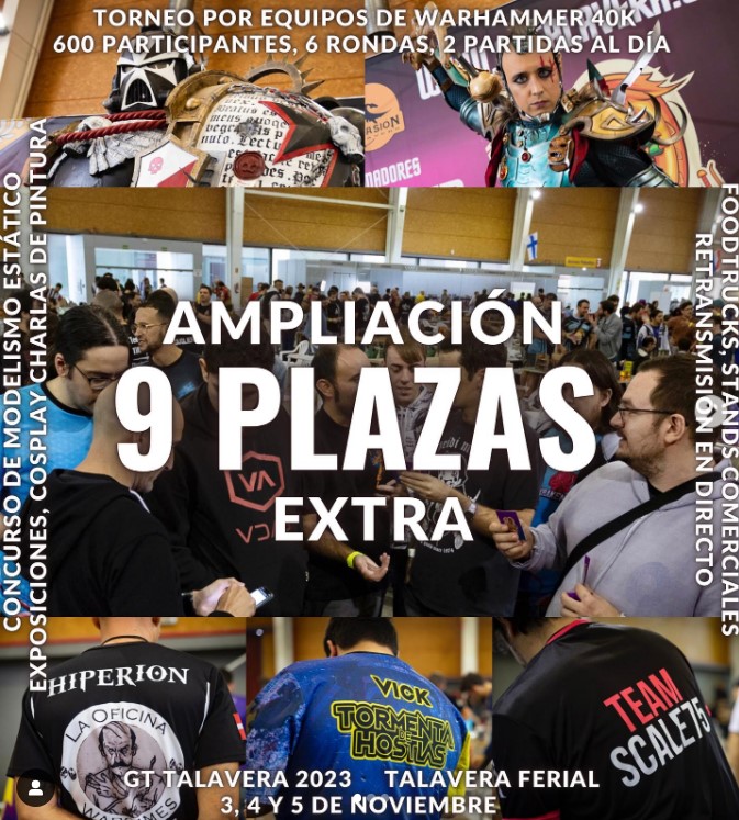 Y si quieres ir pero no tienes un grupete de amigos warhammeros, o si sois unos cuantos pero no llegáis a ser 6, hay un grupo de WhatsApp en el que se están formando estos días equipos rápidamente con jugador sueltos con ganas de ir. Podéis acceder desde este enlace al grupo de jugadores sueltos para Talavera.