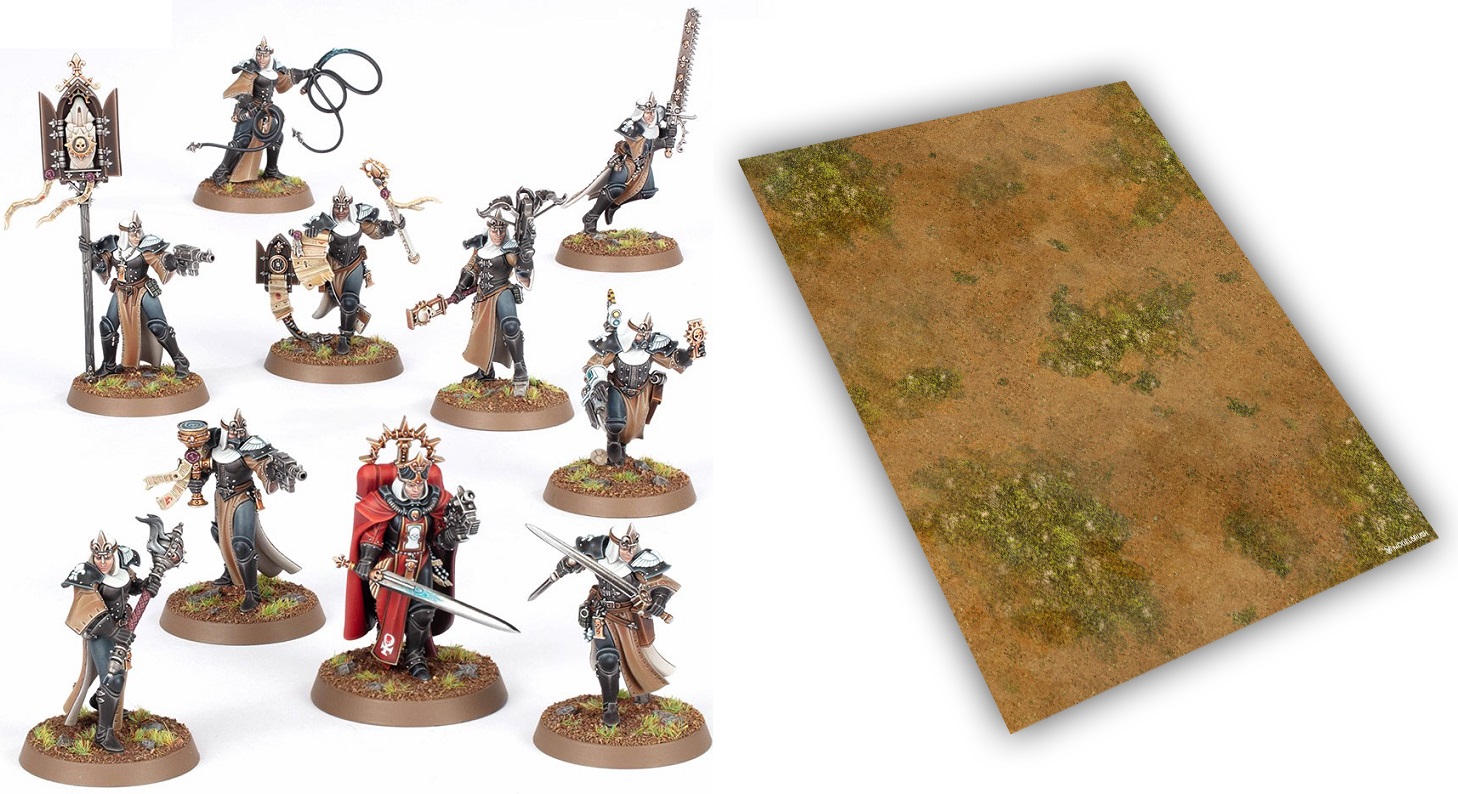 Nuestros amigos de Bandua Wargames y ModelBrush nos lo ponen fácil: ¡cosas gratis! El regalo consiste en uno de estos excelentes tapetes de 22″x30″ y las espectaculares Novicias del Adepta Sororitas.