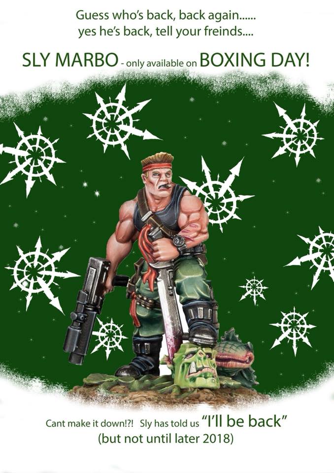 El esperado retorno de Sly Marbo tiene fecha: el Boxing Day inglés, es decir, el 26 de diciembre. Ese día, y sólo mientras dure el limitado stock, estará disponible en tiendas Warhammer y Games Workshop. Su lanzamiento generalizado será más adelante durante 2018.