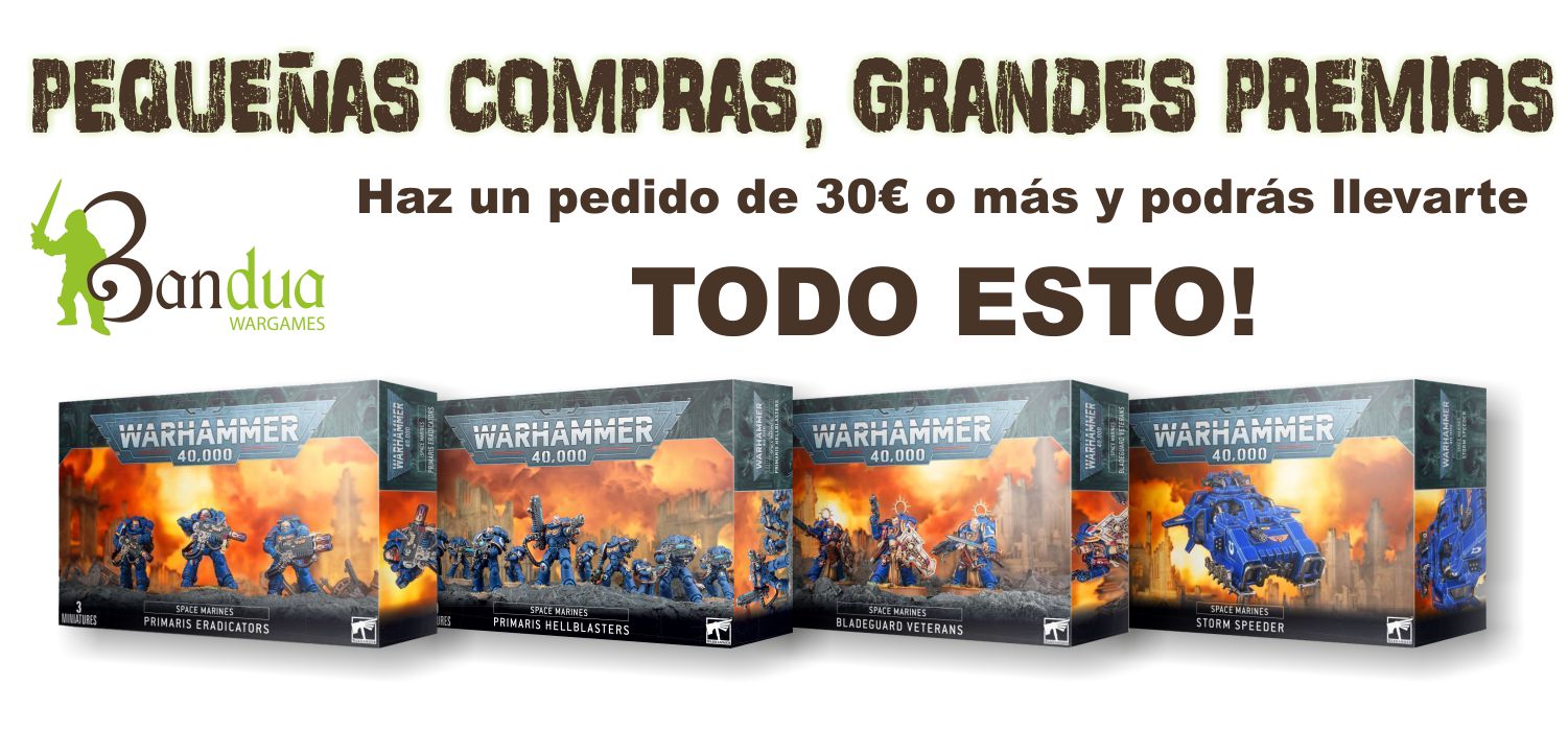 Cada pedido por un importe de 30€ o más (excluyendo los gastos de envío si aplican) en Bandua Wargames hasta el 31 de mayo tendrá como resultado una participación en este sorteo.