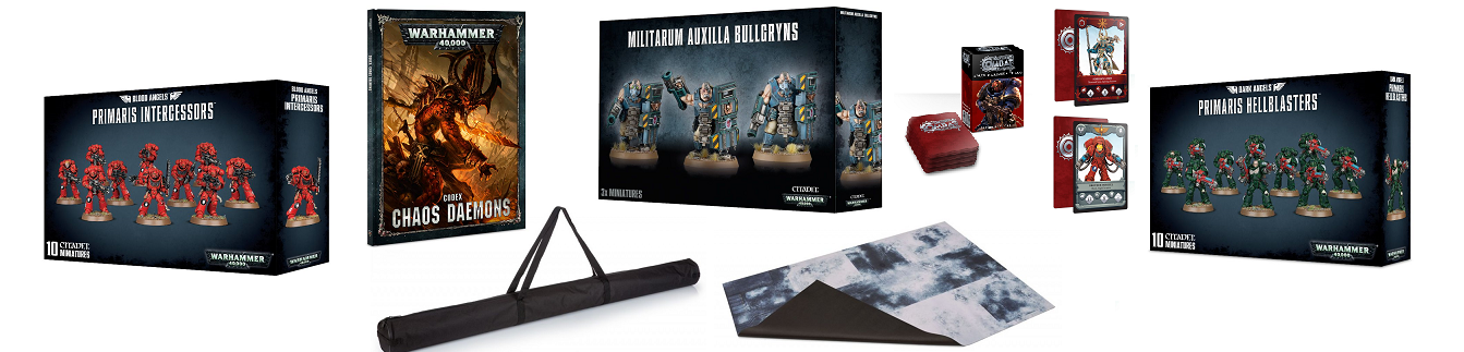 Recordemos que el pack del sorteo de este mes consiste en el Codex: Demonios del Caos, Toretes, Intercesores Ángeles Sangrientos, Hellblasters Ángeles Oscuros, Citadel Combat Cards y un tapete de neopreno con bolsa de transporte.