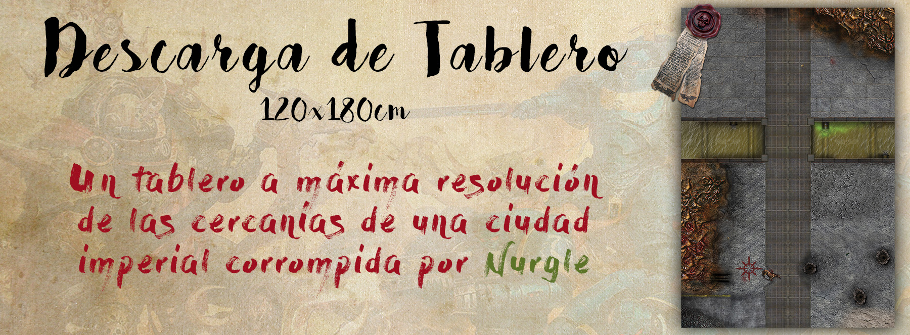 Ofrecemos como descarga el trabajo que ha hecho un oyente y lector, Jesús Green, creando un tapete o tablero imprimible en alta calidad muy interesante para partidas de 40k, en lo que podría ser una ciudad corrupta por Nurgle.