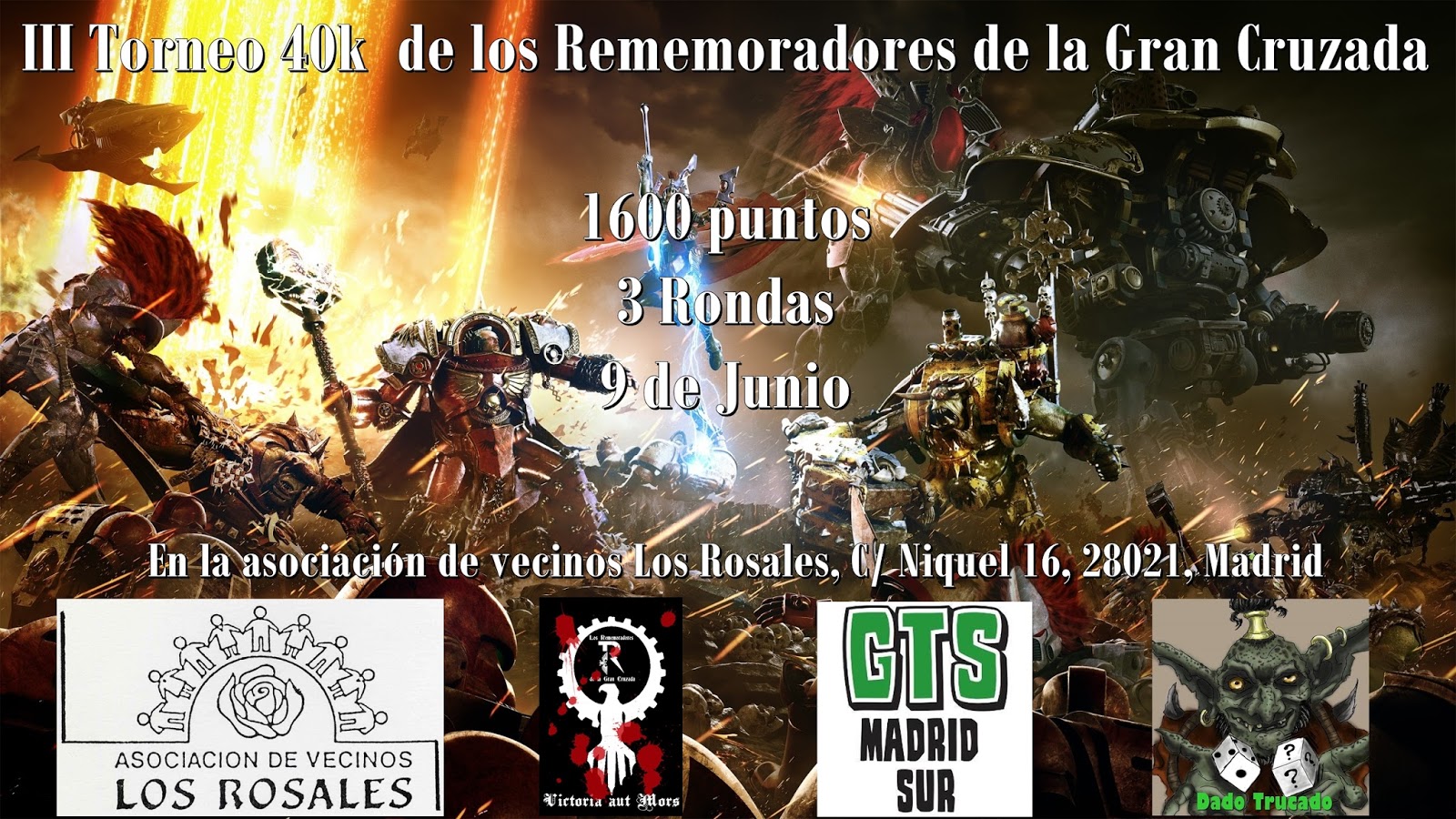 Y sobre torneos, nos avisa Jairo González sobre el III Torneo 40k de los Rememoradores de la Gran Cruzada, en Villaverde, en Madrid. El día 27 se cierra el plazo de inscripción.