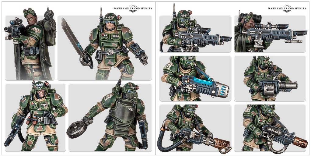 Las matrices de los Kasrkin tienen dos rifles de plasma, dos de fusión, dos lanzagranadas, dos lanzallamas, dos rifles láser de salvas sobrecalentadas y todo lo necesario para hacer especialistas en comunicaciones, reconocimiento, demoliciones, francotirador y médico de combate.