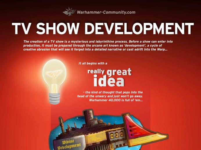 El desarrollo de la serie es cosa de Big Light Productions y está siendo liderado por Frank Spotniz, ganador de 3 Globos de Oro, que por sus primeras declaraciones parece entender lo profundo que es el trasfondo de Warhammer 40k y la cantidad de fans a nivel global de este mundillo.